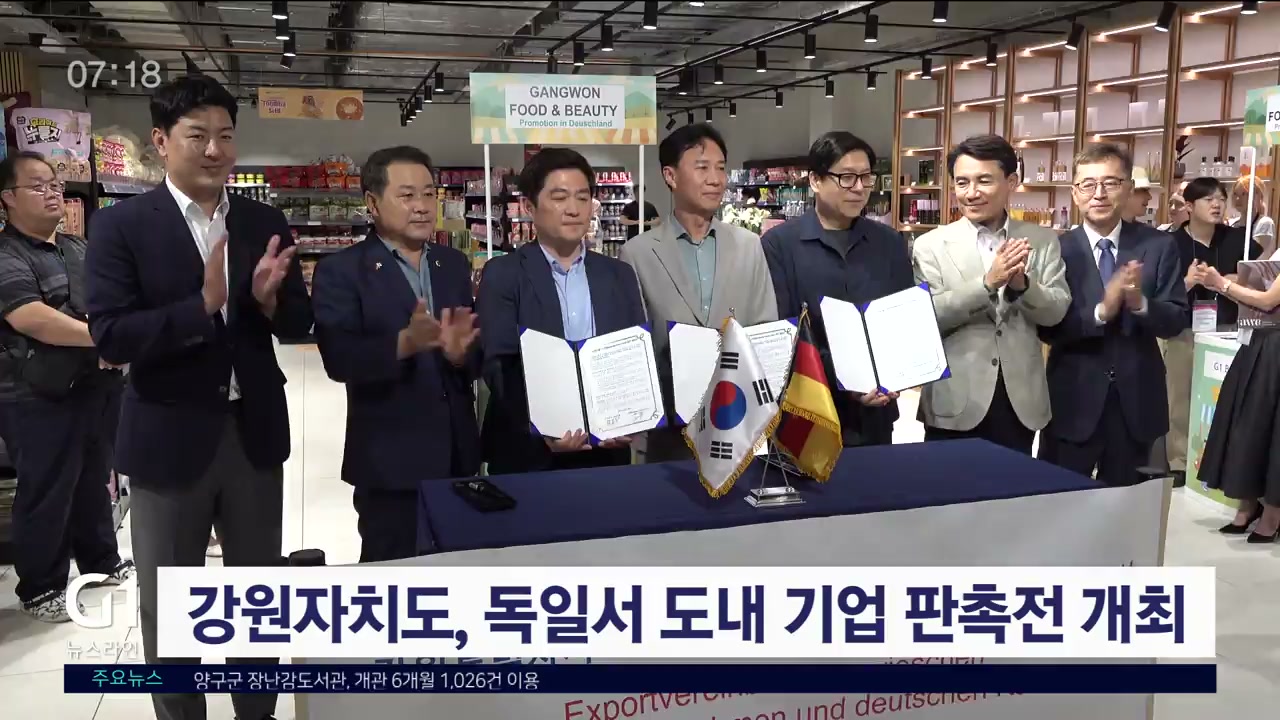 김진태 지사를 비롯한 강원자치도 대표단은 그제(28일) 독일 뒤셀도르프의 한 쇼핑몰에서 도내 식품과 화장품 등 10개 기업이 참가하는 판촉전을 열고 수출 지원 방안을 모색했습니다.