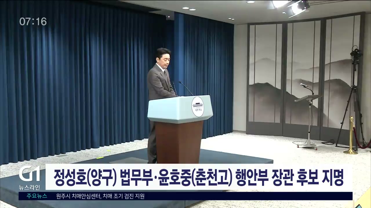 양구 출신의 더불어민주당 정성호 국회의원이 법무부 장관 후보자로, 춘천고 출신 윤호중 의원이 행정안전부 장관 후보자로 지명됐습니다.