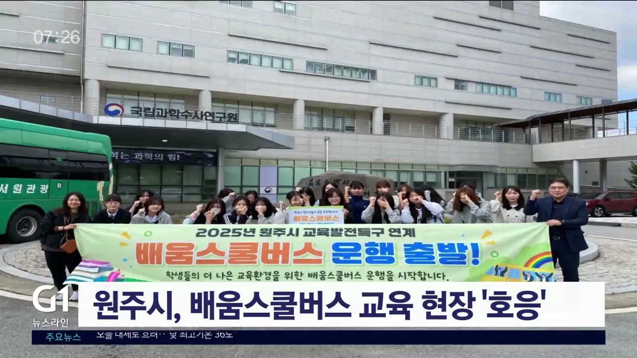 원주시가 교육발전특구 사업의 일환으로 진행 중인 교실 밖 배움터 '배움스쿨버스'가 호응을 얻고 있습니다.