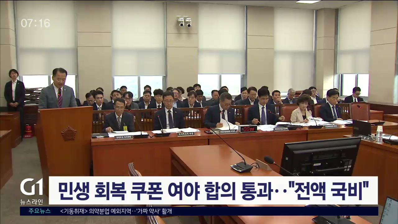 민생 회복 쿠폰 예산 여야 합의 통과 "전액 국비"