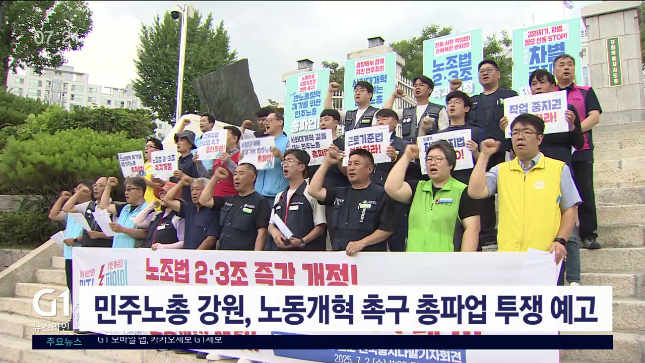 민주노총 강원지역본부는 어제(2일) 강원자치도청 앞에서 기자회견을 열고, 지난 윤석열 정부의 반노동정책 즉각 폐기와 노조법 개정을 요구하며 오는 16일 시작되는 총파업투쟁 계획을 밝혔습니다.