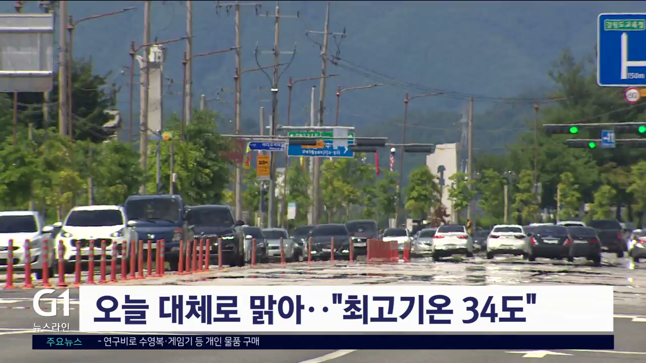 낮 최고기온은 영서권 영상 32도에서 34도, 영동권 영상 26도에서 28도 사이의 분포를 보이겠습니다.