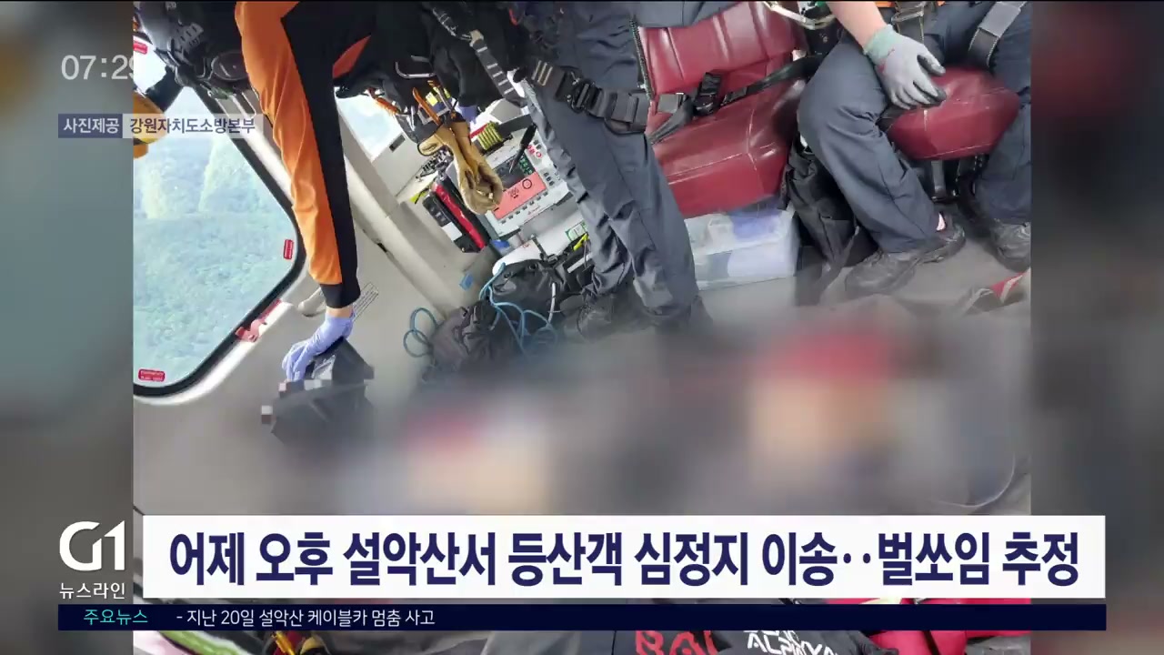 어제(22일) 오후 3시 17분쯤 인제군 설악산에서 하산하던 등산객이 심정지 상태로 항공 이송 됐습니다.