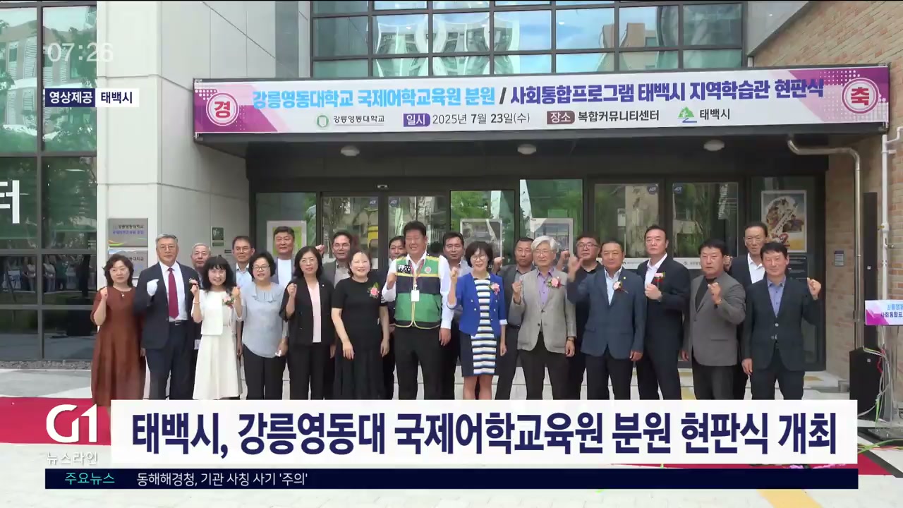 태백 복합커뮤니티센터에 들어서는 강릉영동대학교 국제어학교육원 분원과 태백시 지역학습관 개관을 기념하는 현판식이 어제(23일) 열렸습니다.