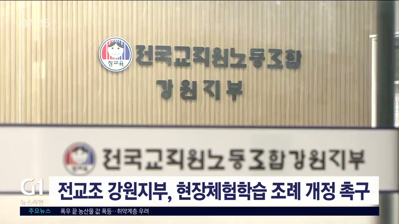 전교조 강원지부는 조례 개정 요구를 통해, 현장체험학습 시 안전관리 보조 인력의 실질적 지원과, 찾아오는 현장체험학습 도입 등을 촉구했습니다.