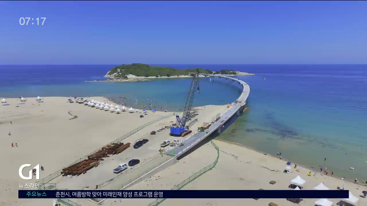 400억 원을 들여 송지호 해변과 바위 섬 죽도를 연결하는 해상길과 실내 복합 해양레저시설 등을 만드는 해양관광복합지구 조성 사업.