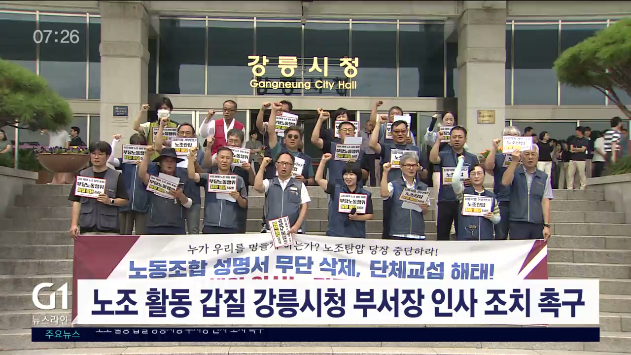 이에 대해 강릉시는 '성명서 삭제는 구체적 사실과 근거 없이 특정인을 비방하는 내용이라 관련 규정에 따라 정당하게 진행했고, 단체교섭 불성실 역시 사실이 아니라며 앞으로도 노조 측의 정당한 요구에는 언제든 응할 것'이라고 밝혔습니다.