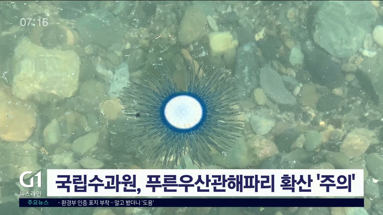 국립수산과학원은 푸른우산관 해파리가 지난달 제주 해역에서 관찰된 이후 남해안과 동해안 일대에서 대량 출현하고 있다며,