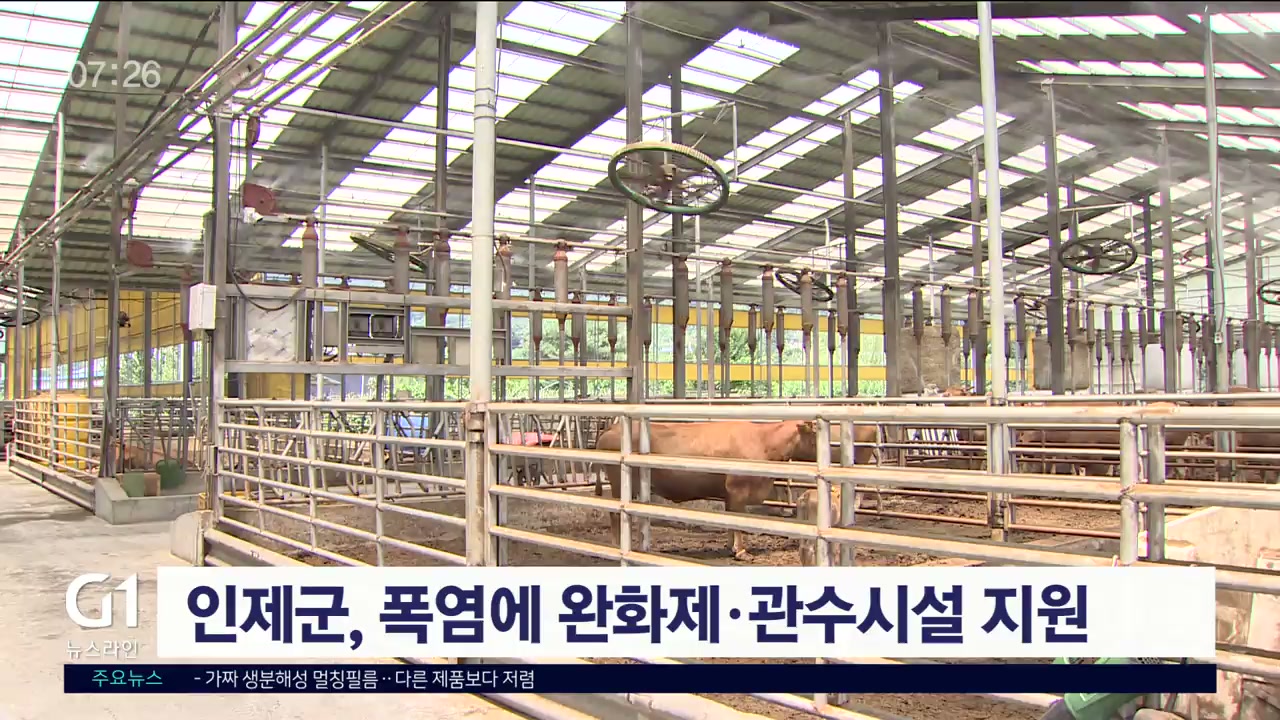 인제군이 축산 농가의 폭염 대응을 위한 가축 고온 스트레스 완화제와 관수 시설을 지원합니다.