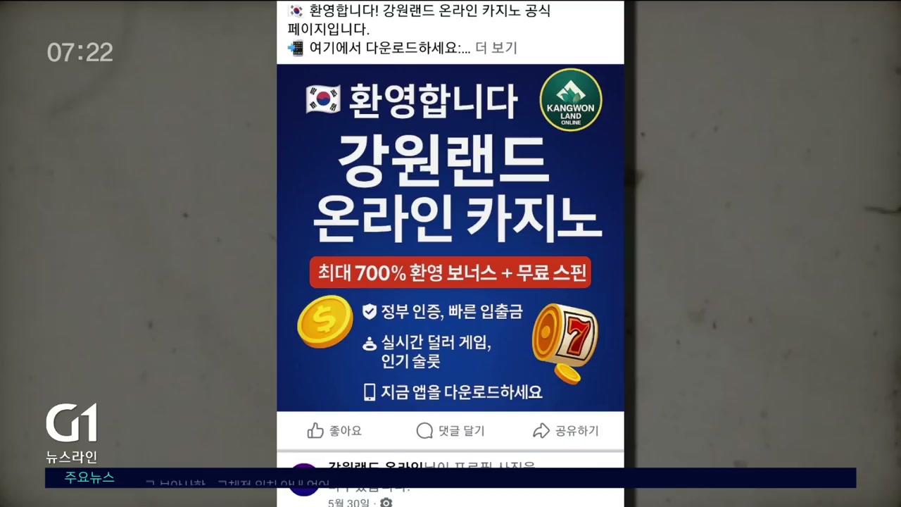 지상파 방송 아나운서가 뉴스를 가장해 강원랜드 카지노의 온라인 개설 소식을 알립니다.