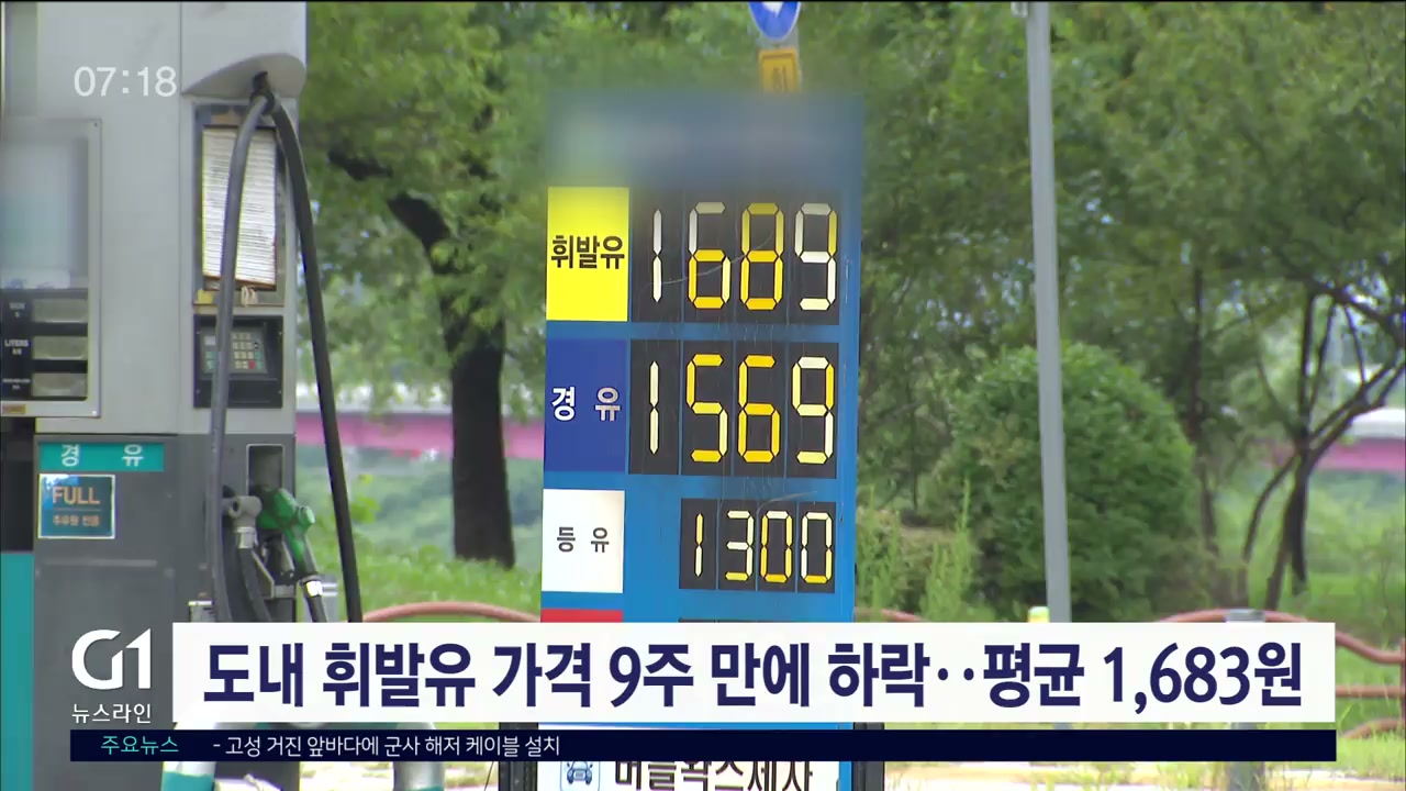 도내 휘발유 가격 9주만에 하락..평균 1,683원