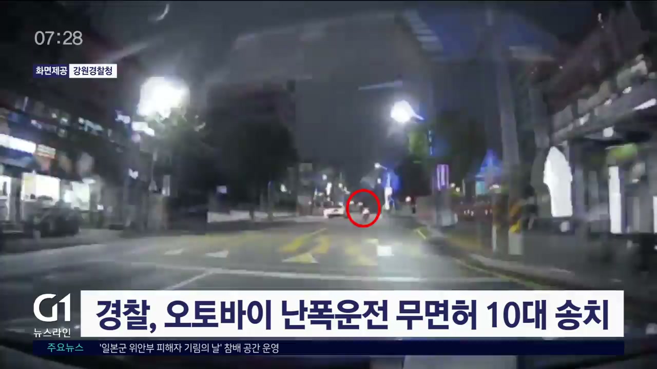 A군은 지난 6월 춘천 시내 일대에서 면허 없이 오토바이를 몰며 중앙선을 넘나들고 신호를 어기는 등 난폭운전을 한 혐의를 받습니다.