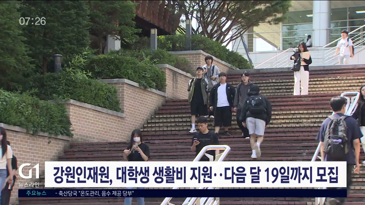 강원인재원이 도내 거주 대학생들을 대상으로 다음달 19일까지 온라인 신청을 받아, 200명에게 생활비를 지원합니다.