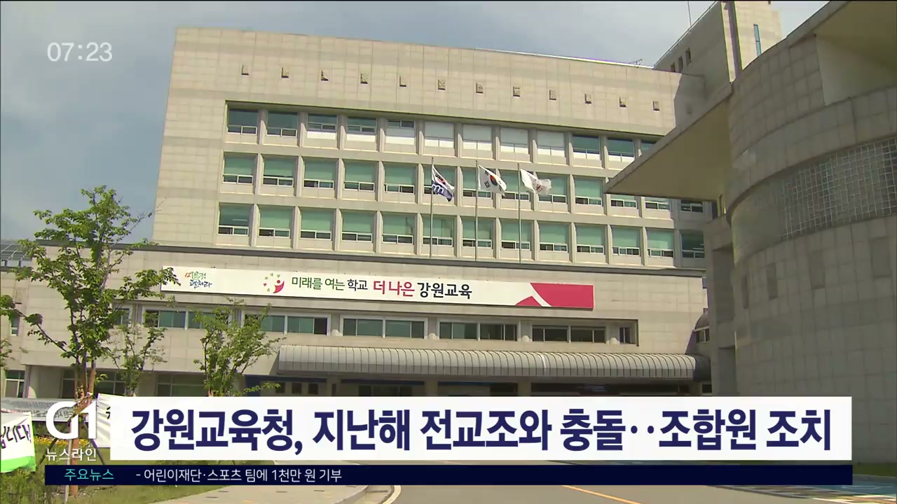강원자치도교육청이 지난해 10월말 양양고를 찾은 신경호 교육감을 향해 면담을 요구한 전국교직원노동조합 강원지부 조합원 13명에 대해 신분상 조치를 내렸습니다.