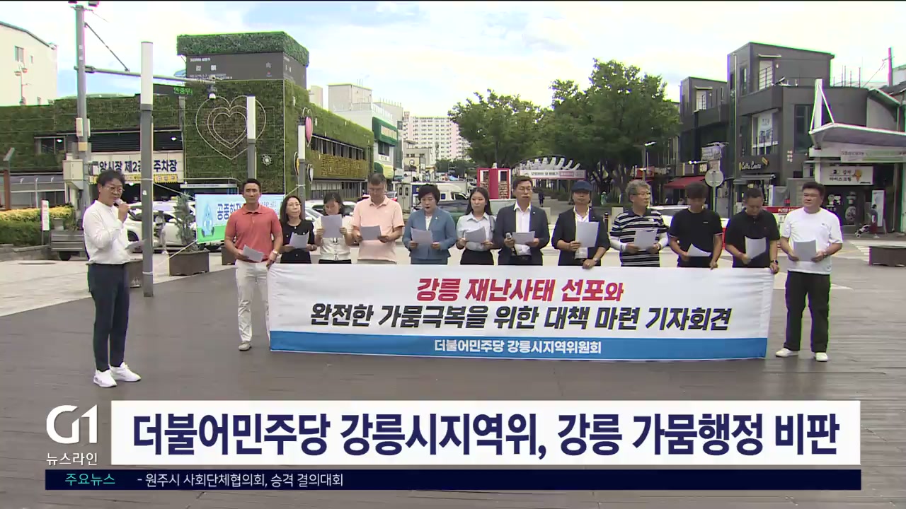 더불어민주당 강릉시지역위원회는 어제(1일) 강릉 월화거리에서 기자회견을 열고, 강릉시의 가뭄 행정을 질타했습니다.