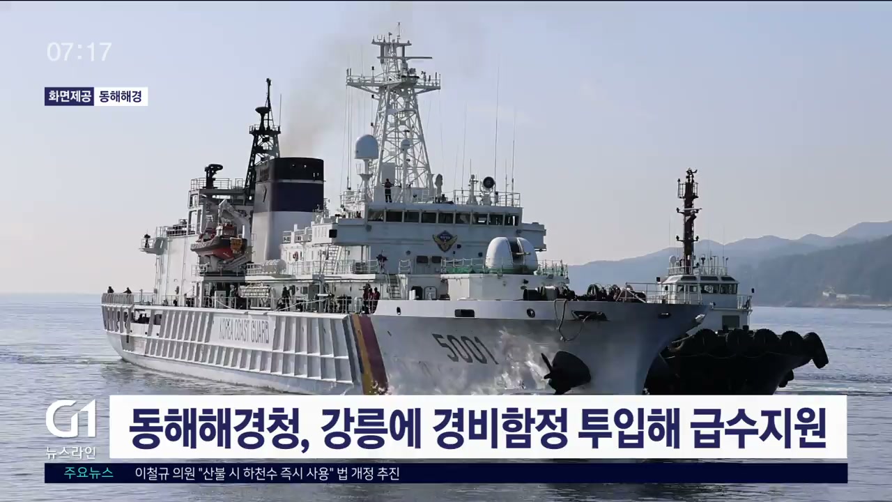 동해해경청, 강릉에 경비함정 투입해 급수지원