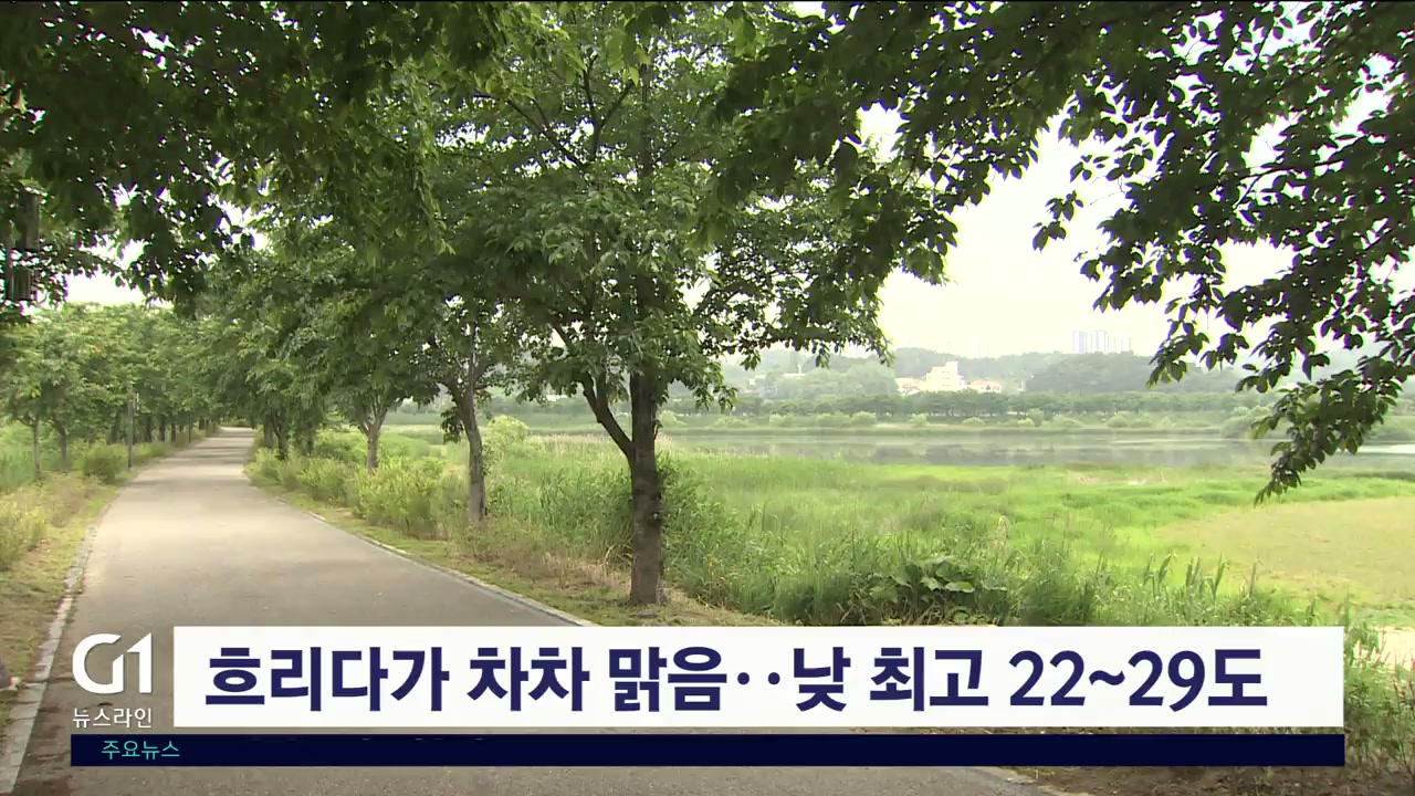 낮 최고기온은 영서지역 27도에서 29도, 산간지역 22도에서 24도, 영동지역은 26도에서 28도의 분포를 보이겠습니다.