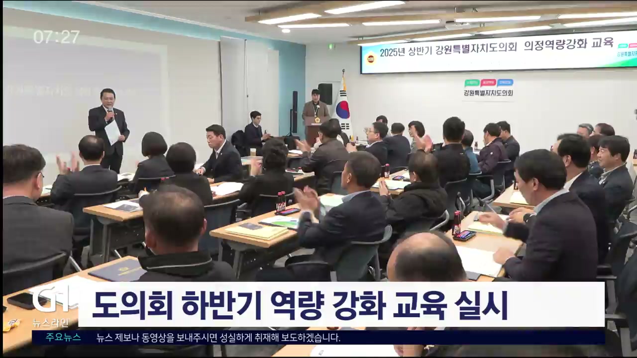 강원자치도의회가 오늘(15일) 세미나실에서 도의원과 사무처 직원들을 대상으로 하반기 의정 역량 강화 교육을 실시합니다.