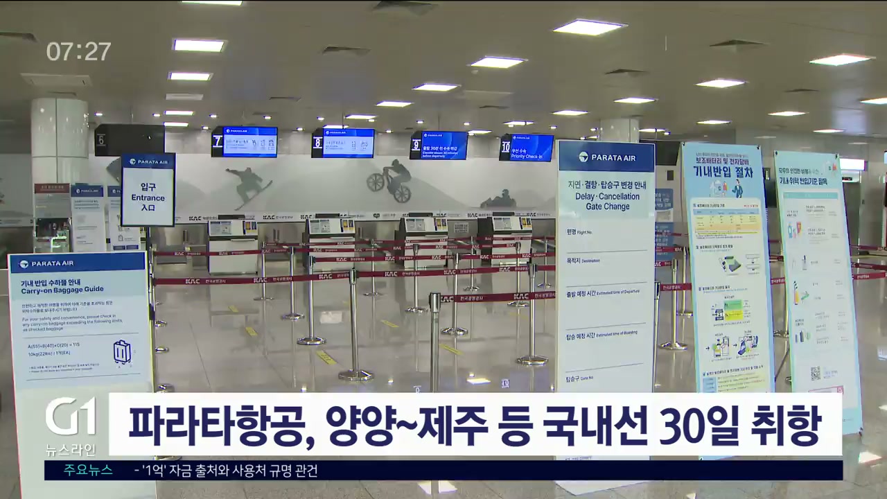 파라타항공은 오는 30일 오전 8시 30분 양양국제공항을 출발해 오전 9시 50분 제주국제공항에 도착하는 국내선 첫 운항을 시작한다고 밝혔습니다.