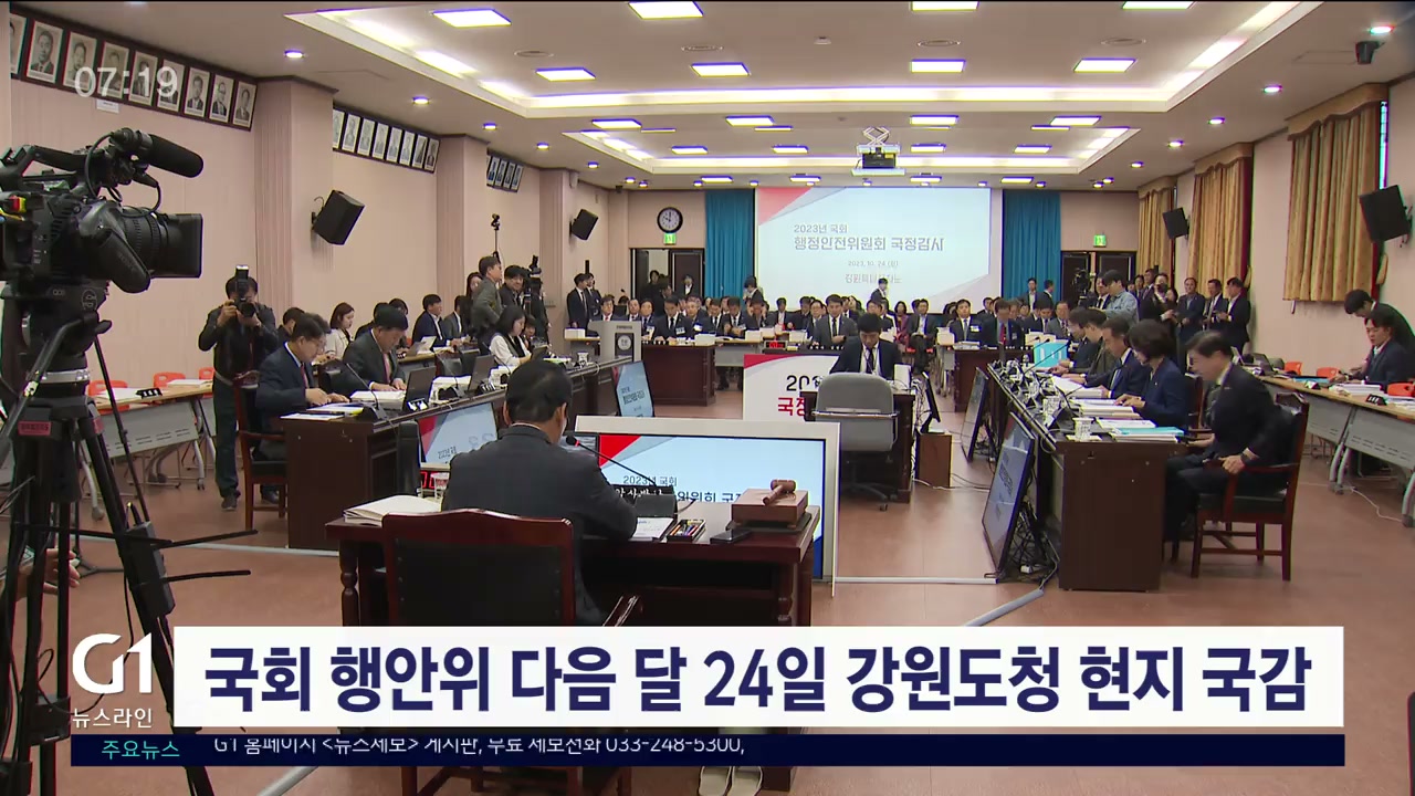 국회 행정안전위원회는 다음 달 24일 오전 강원도청에서 강원특별자치도에 대한 국정감사를 하기로 의결했습니다.