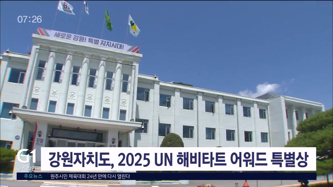 강원자치도가 유엔 산하 기구인 유엔 해비타트로부터 '유엔 해비타트 어워드 특별상'을 받았습니다.