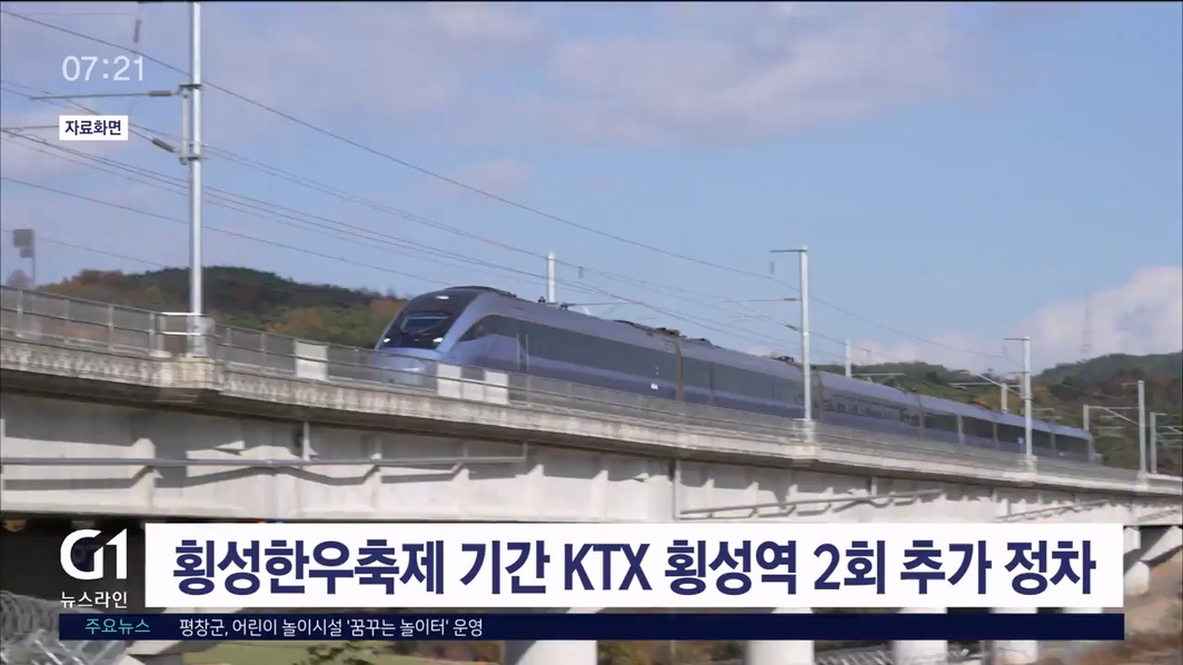 오는 22일부터 닷새간 열리는 횡성한우축제 기간에 KTX-이음 열차가 횡성역에 하루 2차례 추가 정차합니다.
