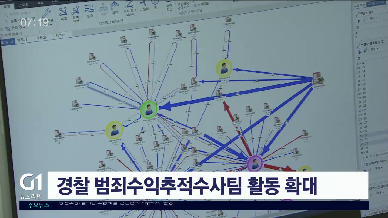 "경찰에서 활용하고 있는 수사 자료 분석 프로그램입니다. 이 프로그램을 활용해서 범죄자의 금융 계좌나 소유 재산을 추적할 수 있습니다."