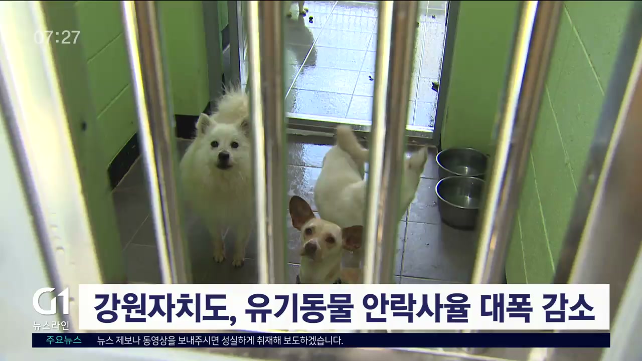 강원자치도에 따르면 지난 9월말 기준 도내 유기동물 안락사 비율은 9.1%로 3년 전 2022년 19.5%에서 크게 감소했습니다.