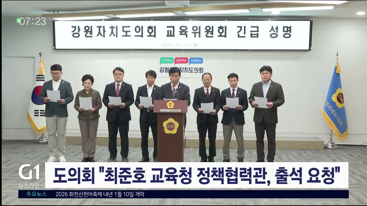 도의회 교육위는 어제(10일) 긴급 기자회견을 열고 "최 협력관의 불출석은 정당 사유가 될 수 없다"며 이같이 요구했습니다.