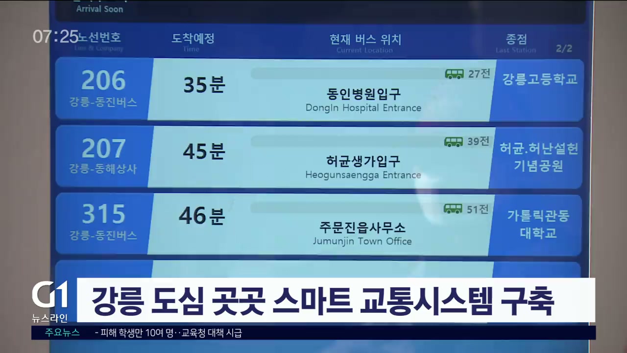 강릉시가 내년 ITS세계총회를 앞두고 시민이 첨단 교통 체계를 직접 체감할 수 있도록 관련 시스템을 구축하고 있습니다.