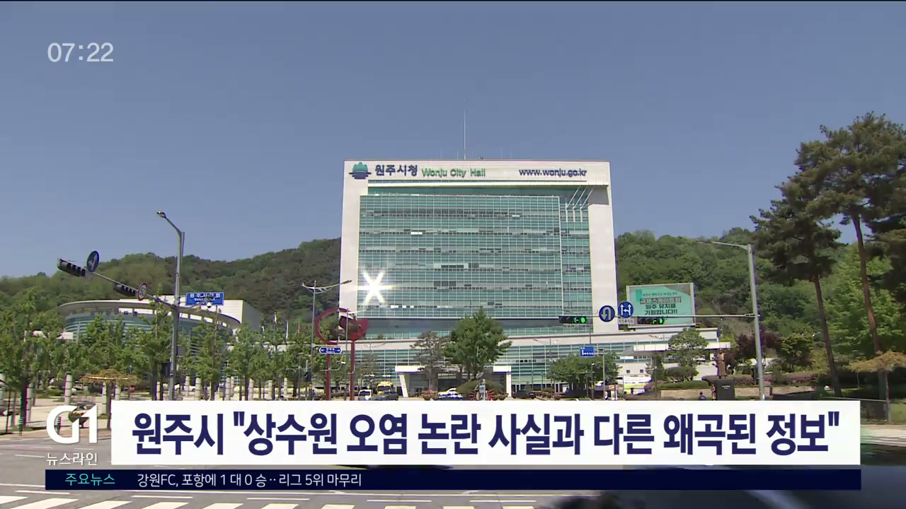 원주시가 최근 일부에서 제기된 상수원 오염 논란에 대해 사실과 다른 왜곡된 정보라며 강하게 반발하고 나섰습니다.