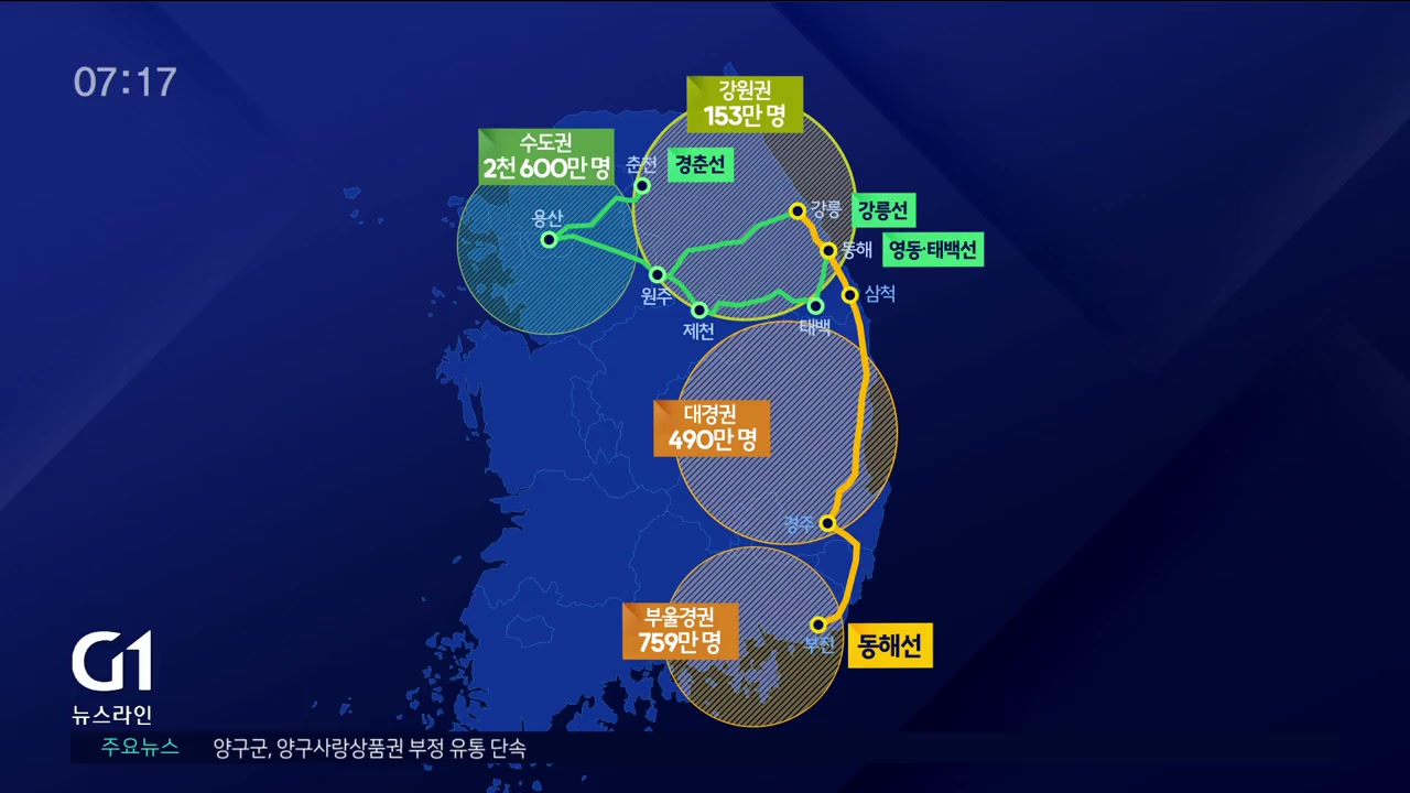 경춘선과 강릉선, 영동·태백선 모두 수도권으로 이어지는 노선입니다.