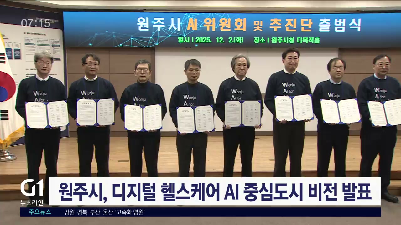 원주시가 디지털 헬스케어 AI 중심도시로 도약하기 위해 AI 위원회와 AI 추진단을 공식 출범하고, 미래 전략인 '와 프로젝트' 중장기 비전을 발표했습니다.
