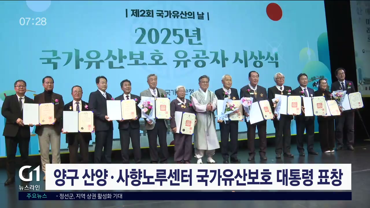 양구 산양·사향노루센터가 어제(9일) 국가유산진흥청에서 열린 제2회 국가 유산의 날 기념식에서 대통령 표창을 받았습니다.