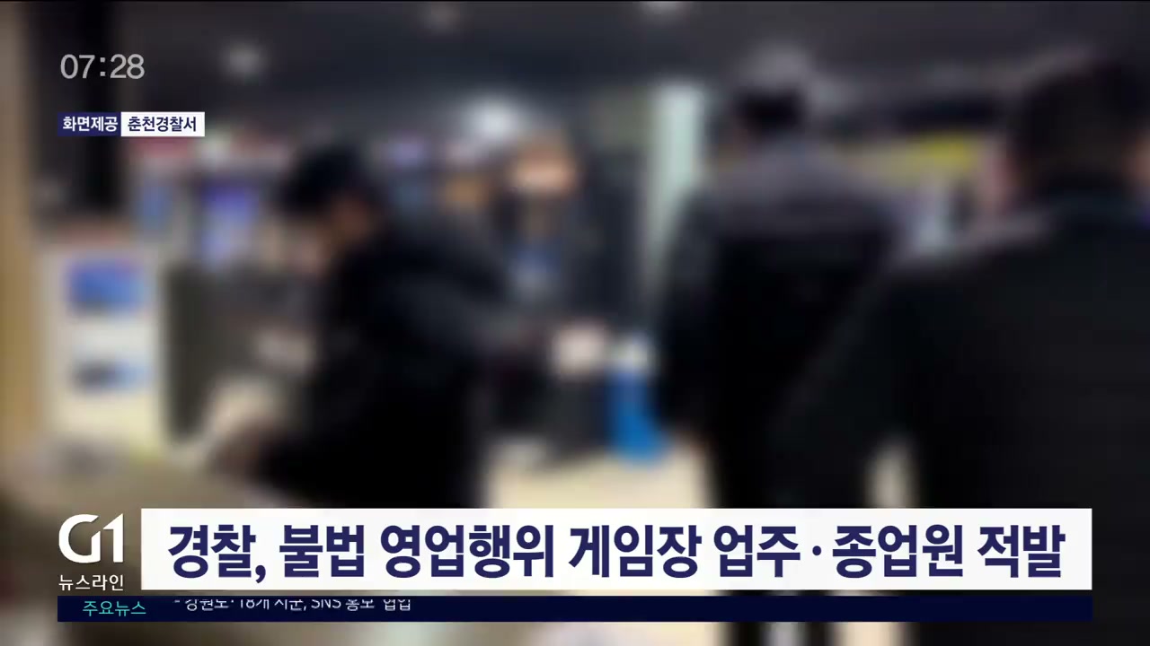 춘천경찰서는 지난 16일 춘천시 후평동 한 게임장에서 단속을 벌여 60대 업주 A씨와 종업원 등 3명을 입건하고, 게임기 90여 대와 현금 700여만 원을 압수했다고 밝혔습니다.