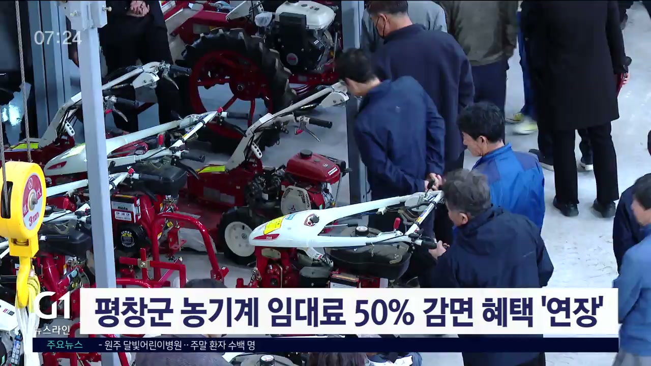 평창군은 농자재 가격과 인건비 상승 등으로 어려움을 겪고 있는 농가 부담을 조금이라도 덜어주기 위해, 농기계 임대료 50% 감면 혜택을 올해 12월말까지 연장하기로 했습니다.
