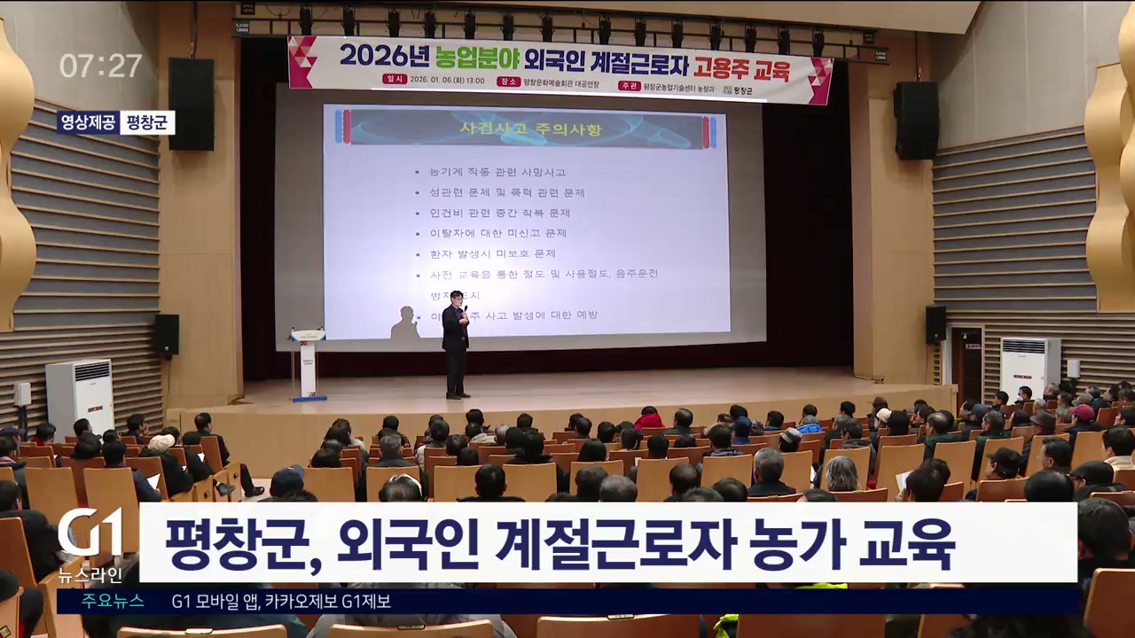 평창군은 어제(6일) 평창문화예술회관 대공연장에서 외국인 계절근로자 고용 농가를 대상으로 교육을 실시했습니다.