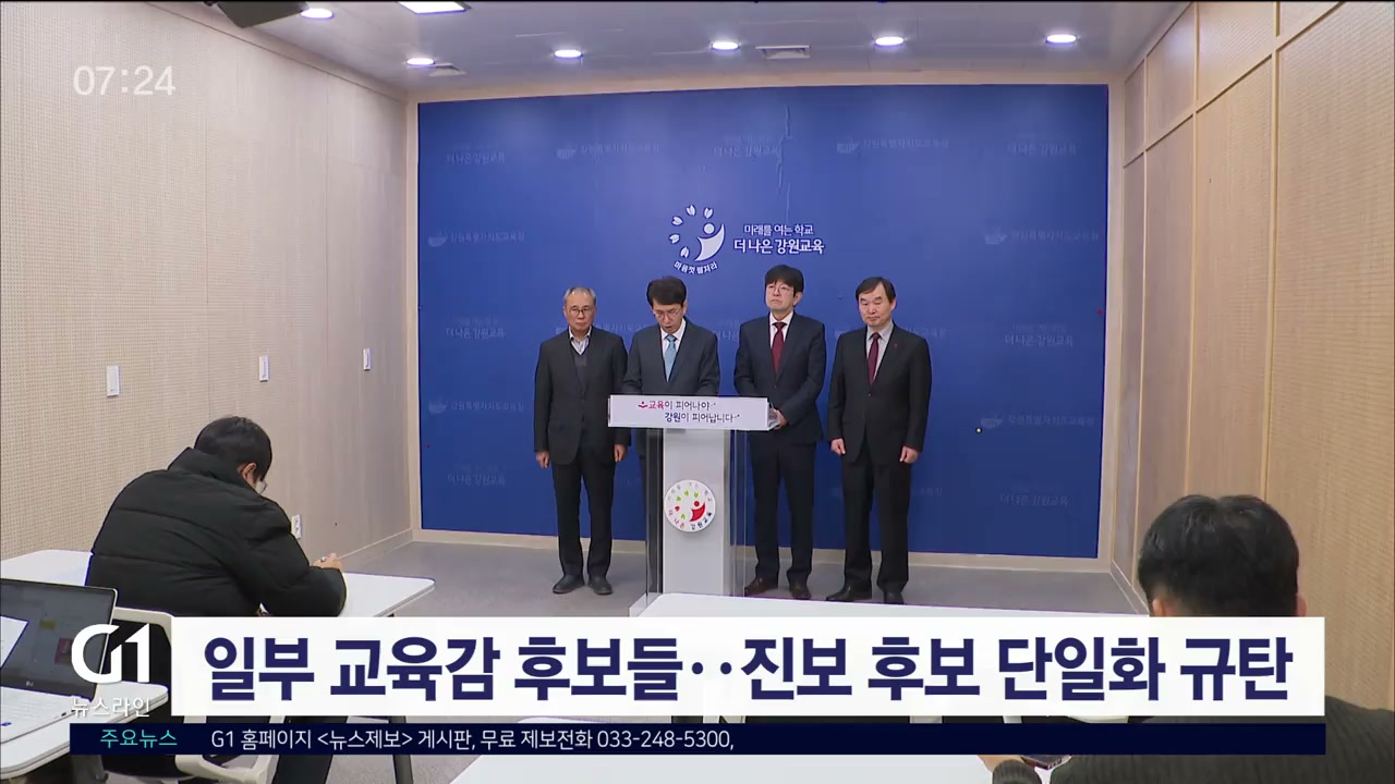 일부 중도 보수 성향의 강원자치도교육감 후보들이 기자회견을 열고, 진보진영 교육감 후보 단일화를 규탄했습니다.