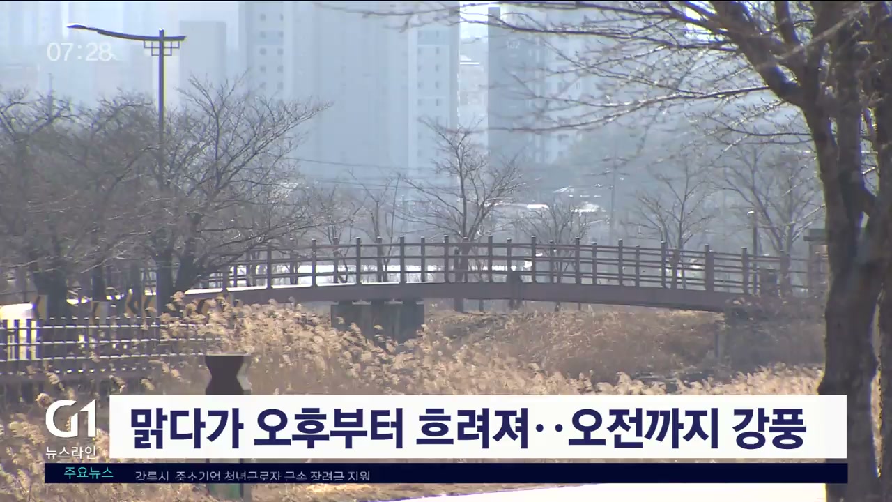 맑다가 오후부터 흐려져..오전까지 강풍
