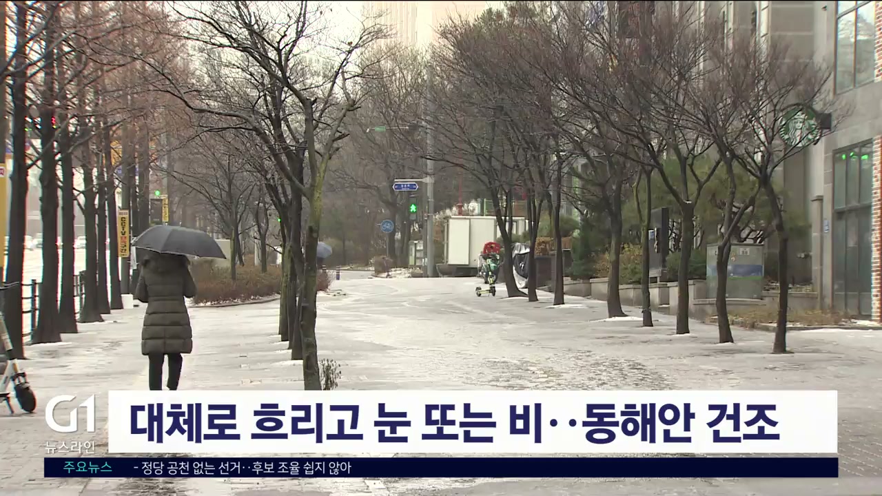 오늘 강원자치도는 대체로 흐린 가운데, 도내 대부분 지역에 눈과 비가 오겠습니다.