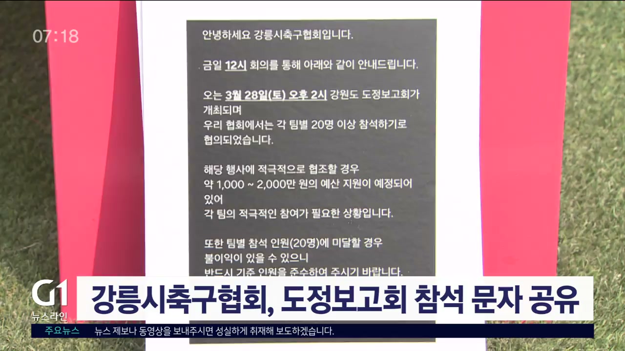 강릉축구협회, 도정보고회 참석 문자 '논란'