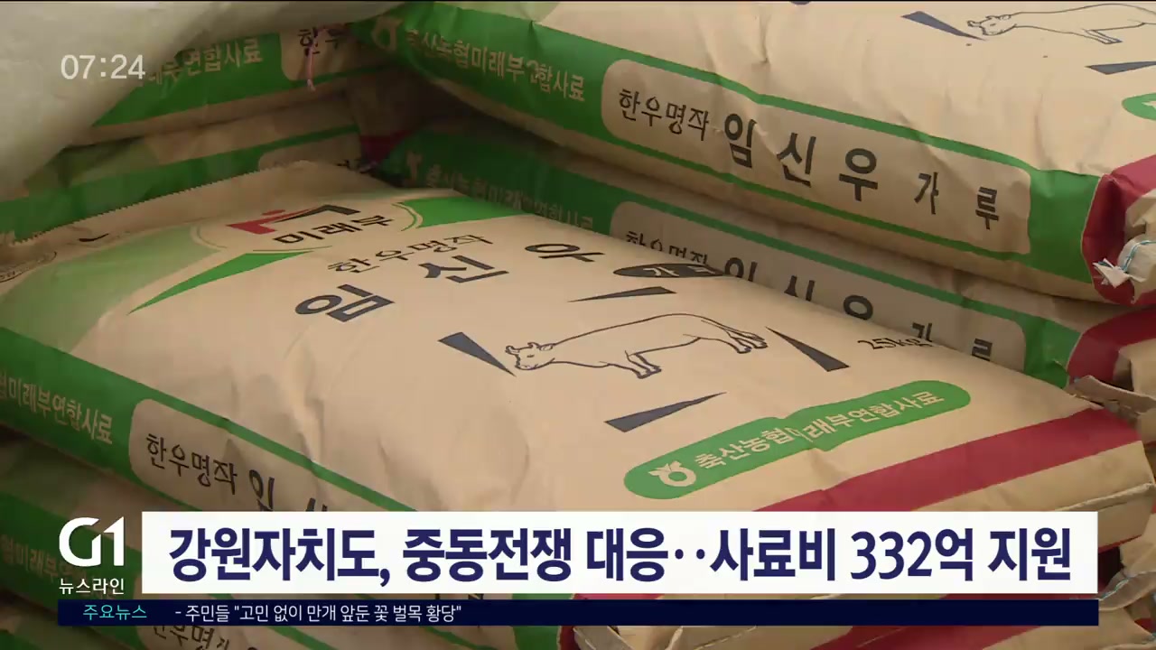 강원자치도가 중동 전쟁 여파에 대응해 축산 농가 사료 구매 정책 자금 332억 원을 긴급 지원합니다.