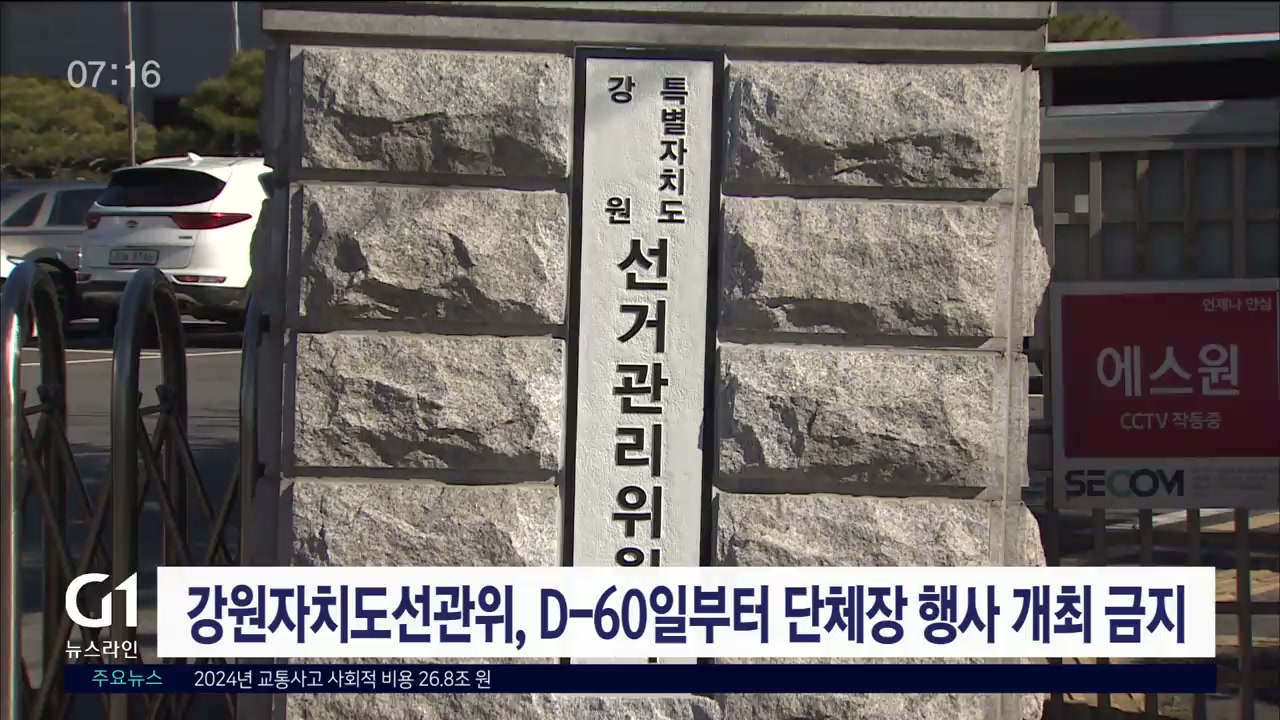 강원자치도선거관리위원회는 이날부터 각종 사업 설명회와 공청회, 직능 단체 모임, 체육대회 등 행사 개최와 후원이 금지된다고 밝혔습니다.