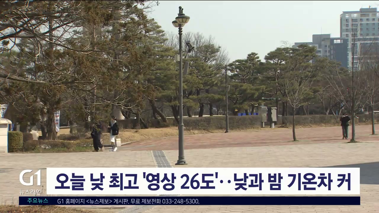 낮 최고기온은 영서권 영상 24도에서 26도, 영동권 영상 15도에서 17도 사이의 분포를 보이겠습니다.