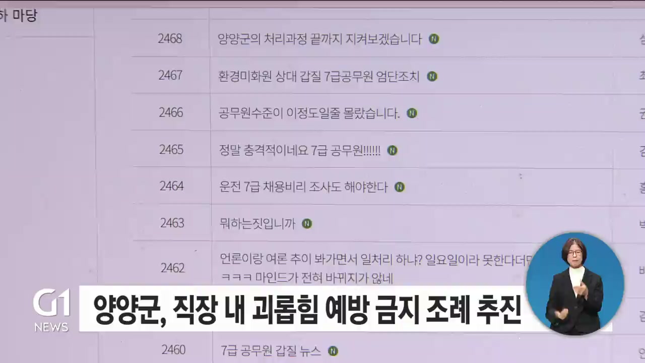 양양군, 직장 내 괴롭힘 예방 금지 조례 추진