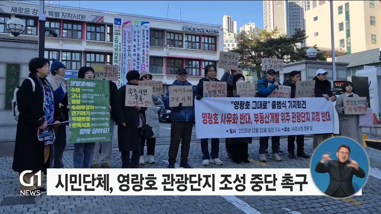 속초 지역 시민단체가 영랑호 관광단지 개발사업 중단을 촉구했습니다.