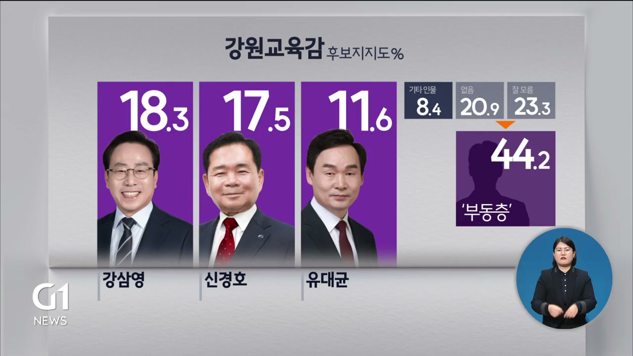 이미 결집 양상을 보이고 있는 도지사 선거와는 달리 교육감 선거는 아직까지는 부동층이 두텁게 나타났습니다.