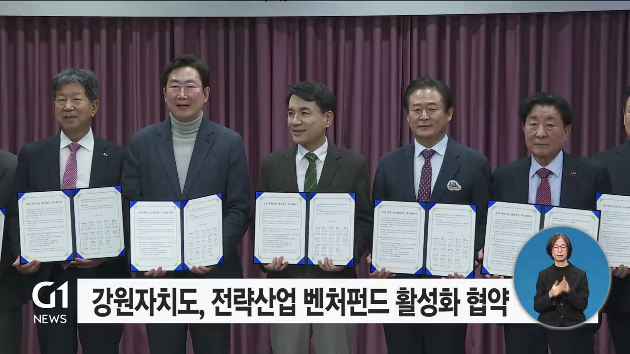 강원자치도가 도내 7개 시군과 자펀드 운용사와 강원 전략 산업 벤처 펀드 활성화를 위한 투자 협약을 맺었습니다.