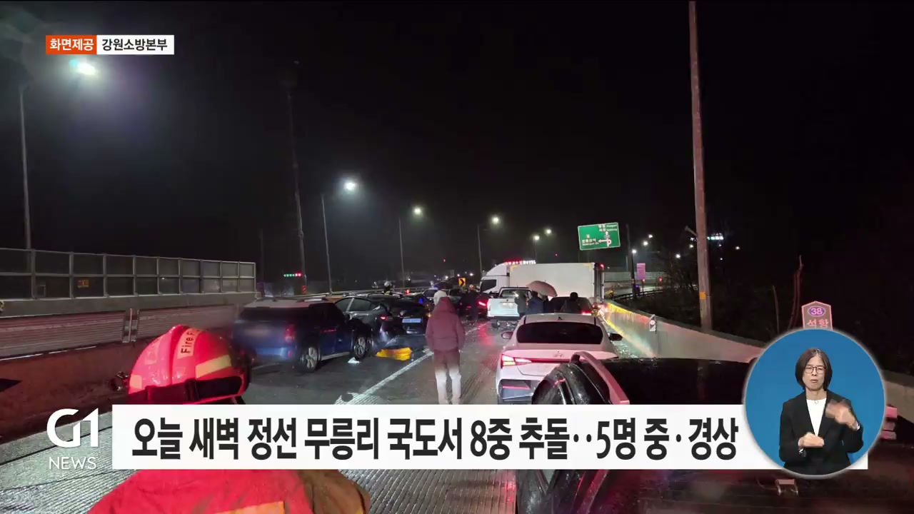 오늘 새벽 정선 무릉리 국도서 8중 추돌..5명 중·경상