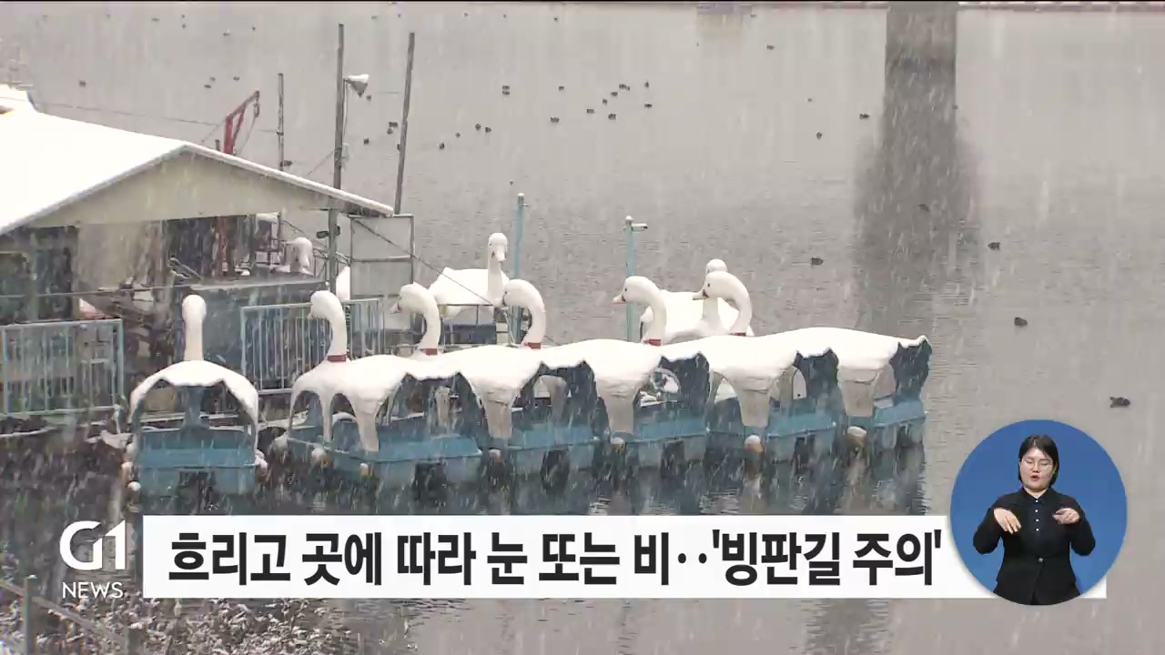 흐리고 곳에 따라 눈 또는 비..'빙판길 주의'